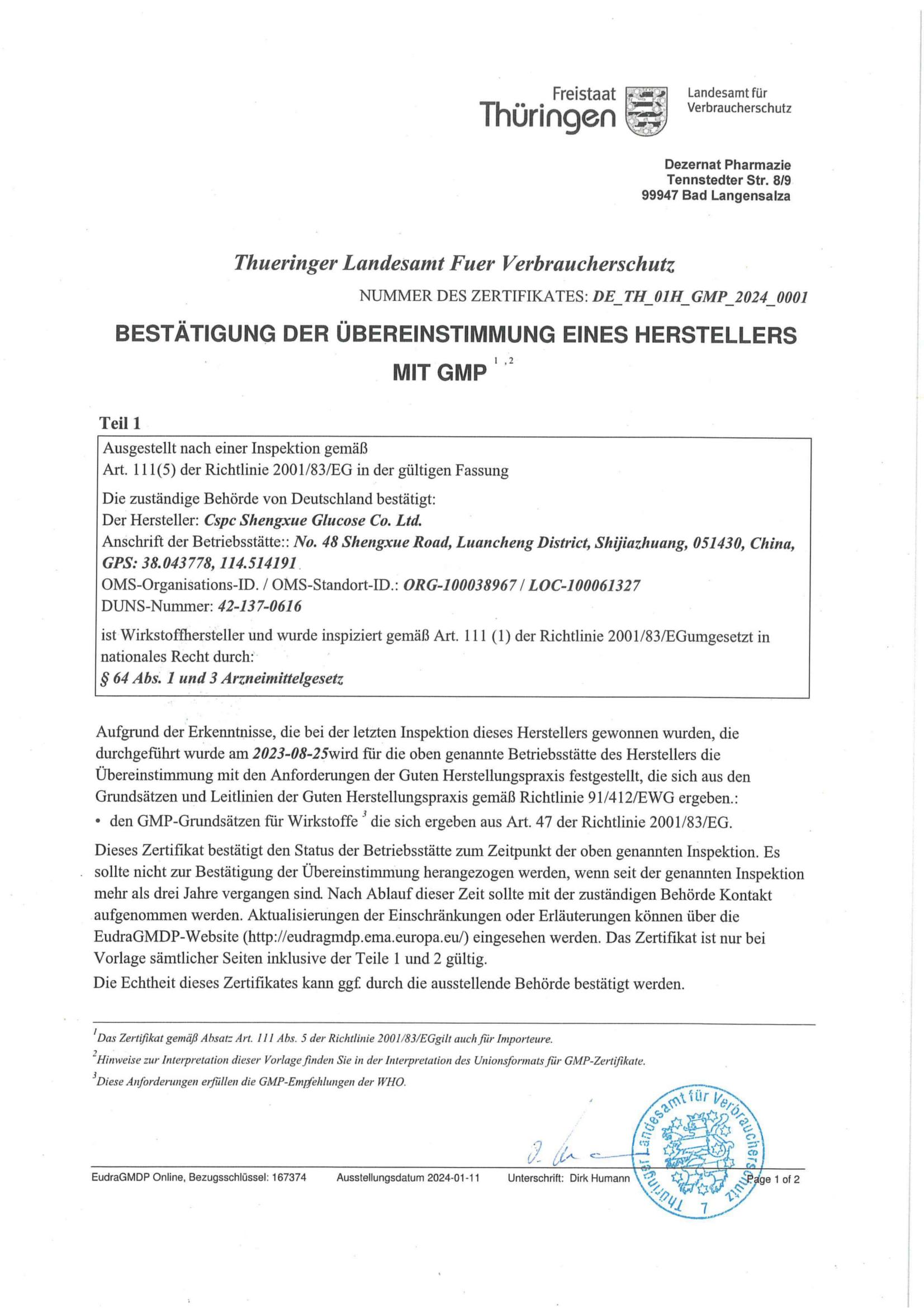 2023年8月,歐盟EDQM對石藥圣雪阿卡波糖進行了為期三天的現場檢查。石藥圣雪上下齊心協(xié)力,認真迎檢,順利通過本次現場檢查。隨著現在GMP證書的到來,石藥圣雪阿卡波糖歐盟EDQM認證工作正式畫上圓滿句號。