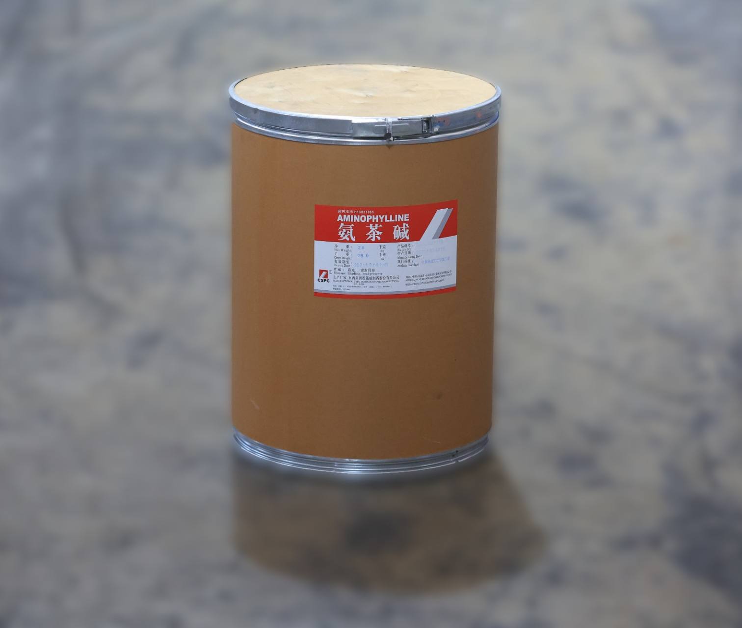 用作原料藥。本品對(duì)呼吸道平滑肌有直接松弛作用,可使支氣管擴(kuò)張,肺活量增加,作用較為持久,尤其是對(duì)痙攣狀態(tài)的支氣管效果顯著,另外氨茶堿還有擴(kuò)張冠狀動(dòng)脈,增加心肌供血,加強(qiáng)心臟收縮力的作用。